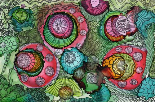 Alcohol Ink has very fluid movement... add movement and imagination and these paintings take on a personality of their own after drawing on them.